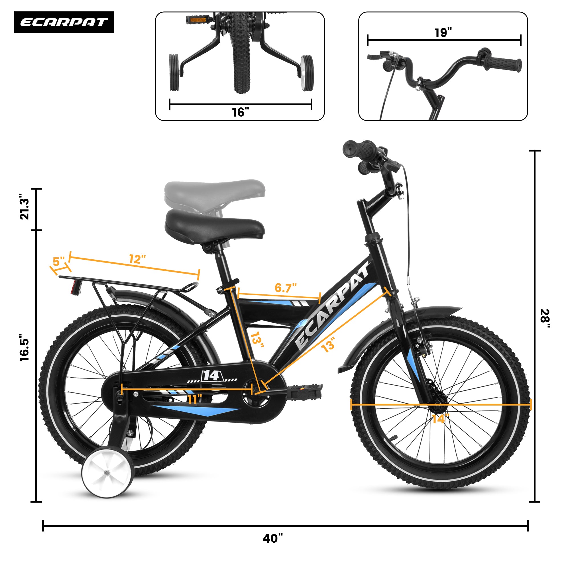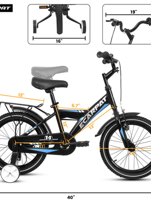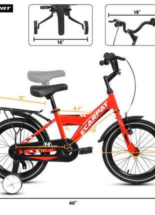 Caroeas Kids Bike 14-16 inch for Boys & Girls Ages 3-7 with Training Wheels, Freestyle Kids' Bicycle with fender and carrier