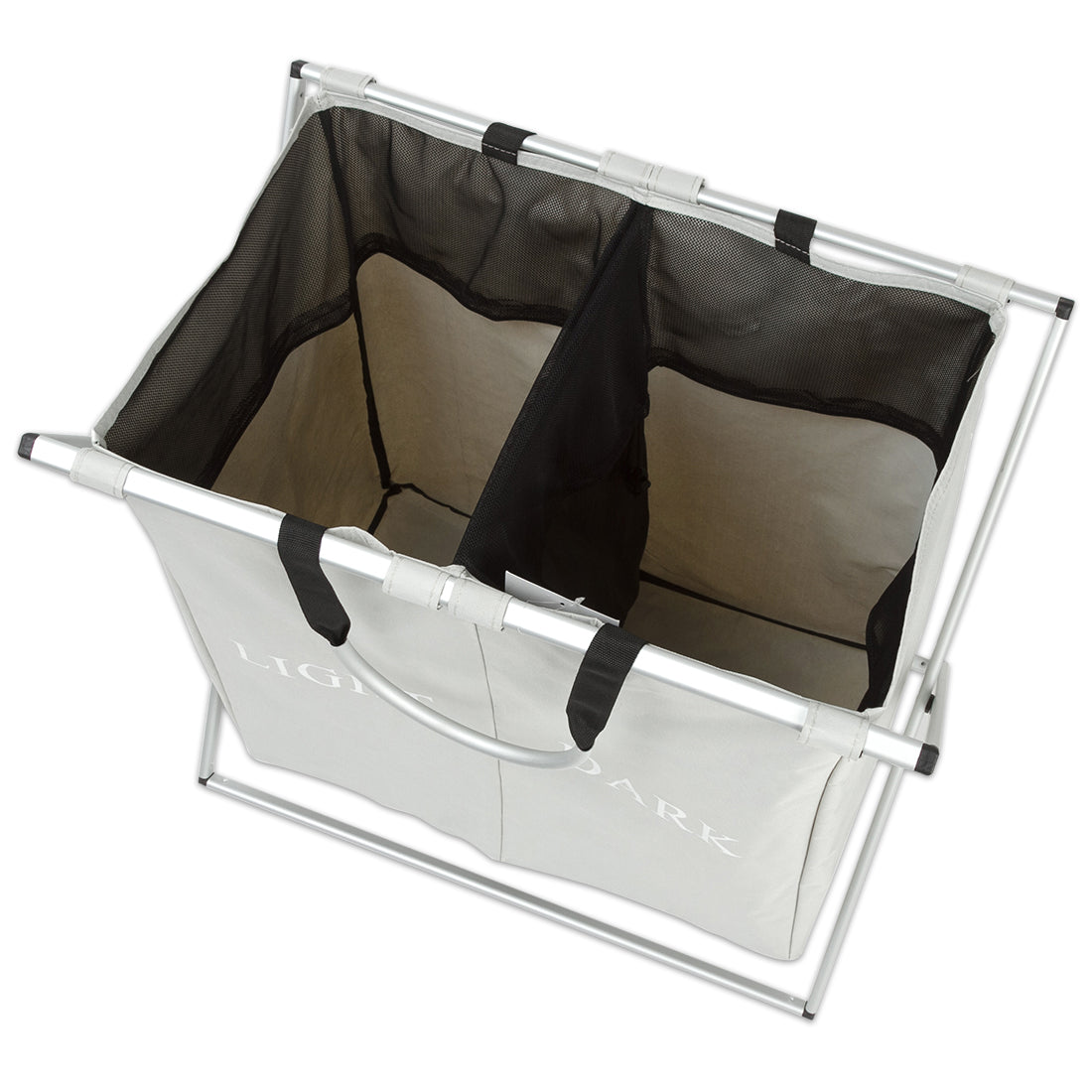 Foldable Laundry Hamper 2 Compartments Easy Sorting Increased Secure with Drawstring Closure