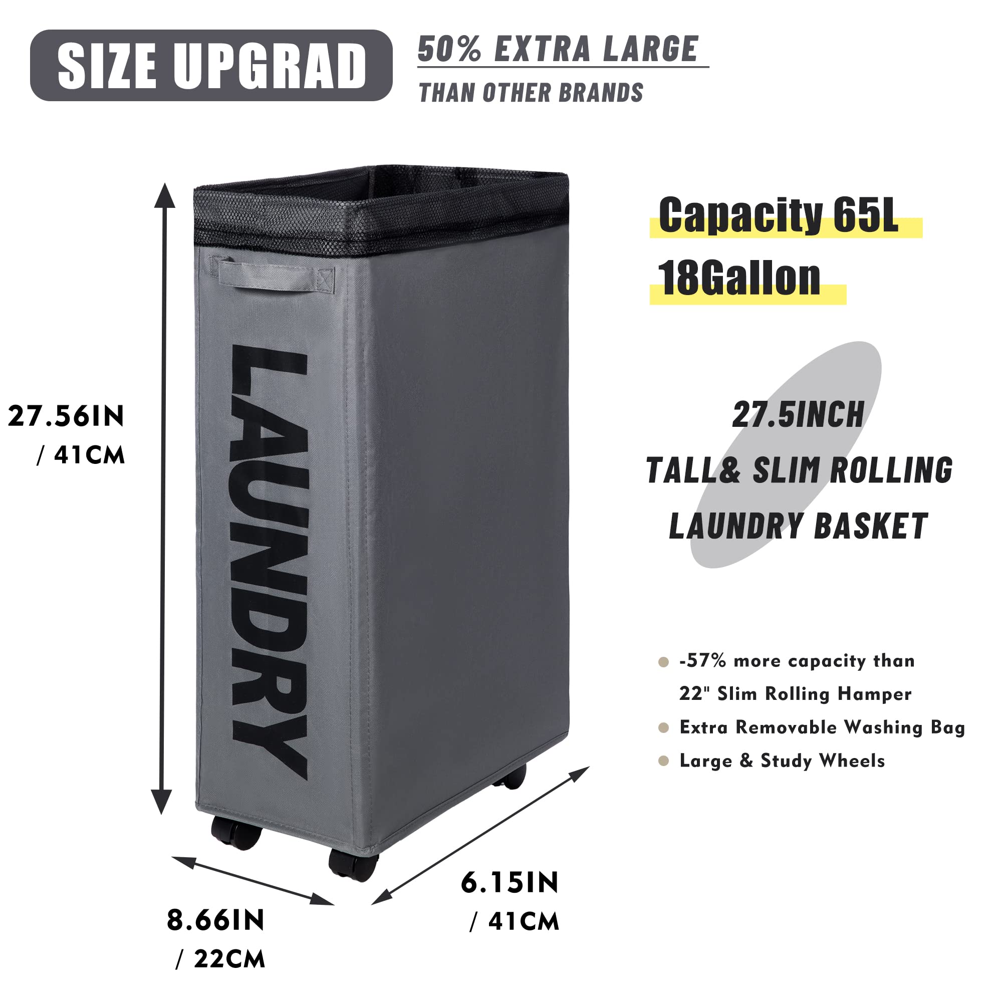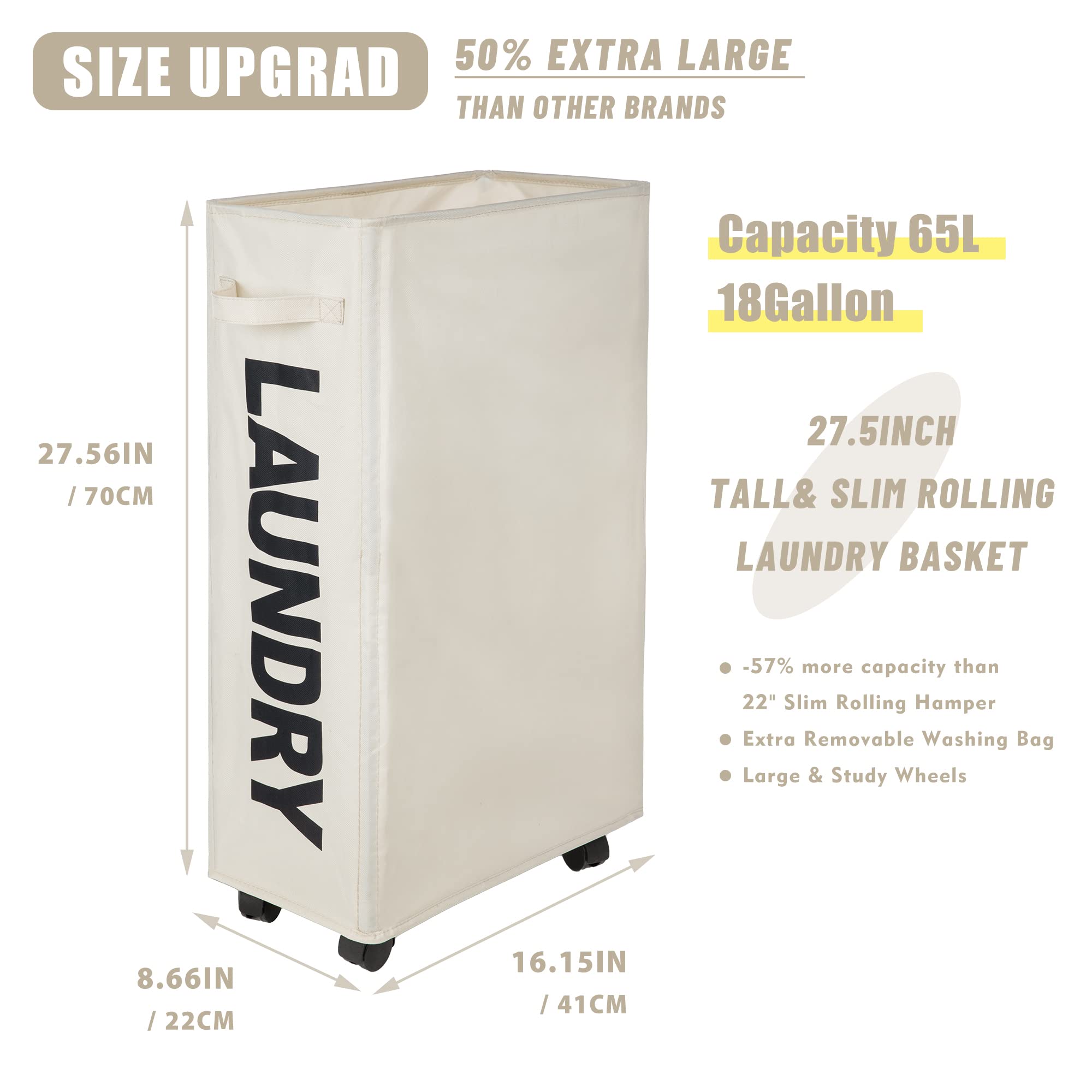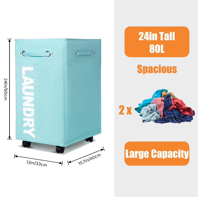 4 Size Tall Laundry Basket Roller Laundry Hamper with Wheels | Caroeas