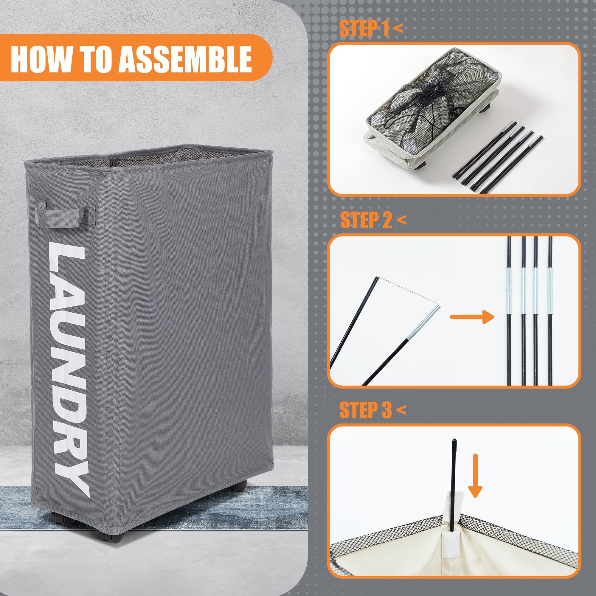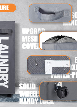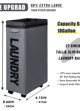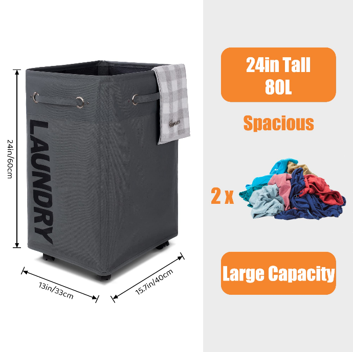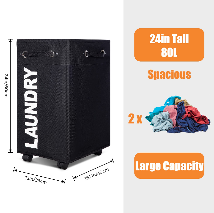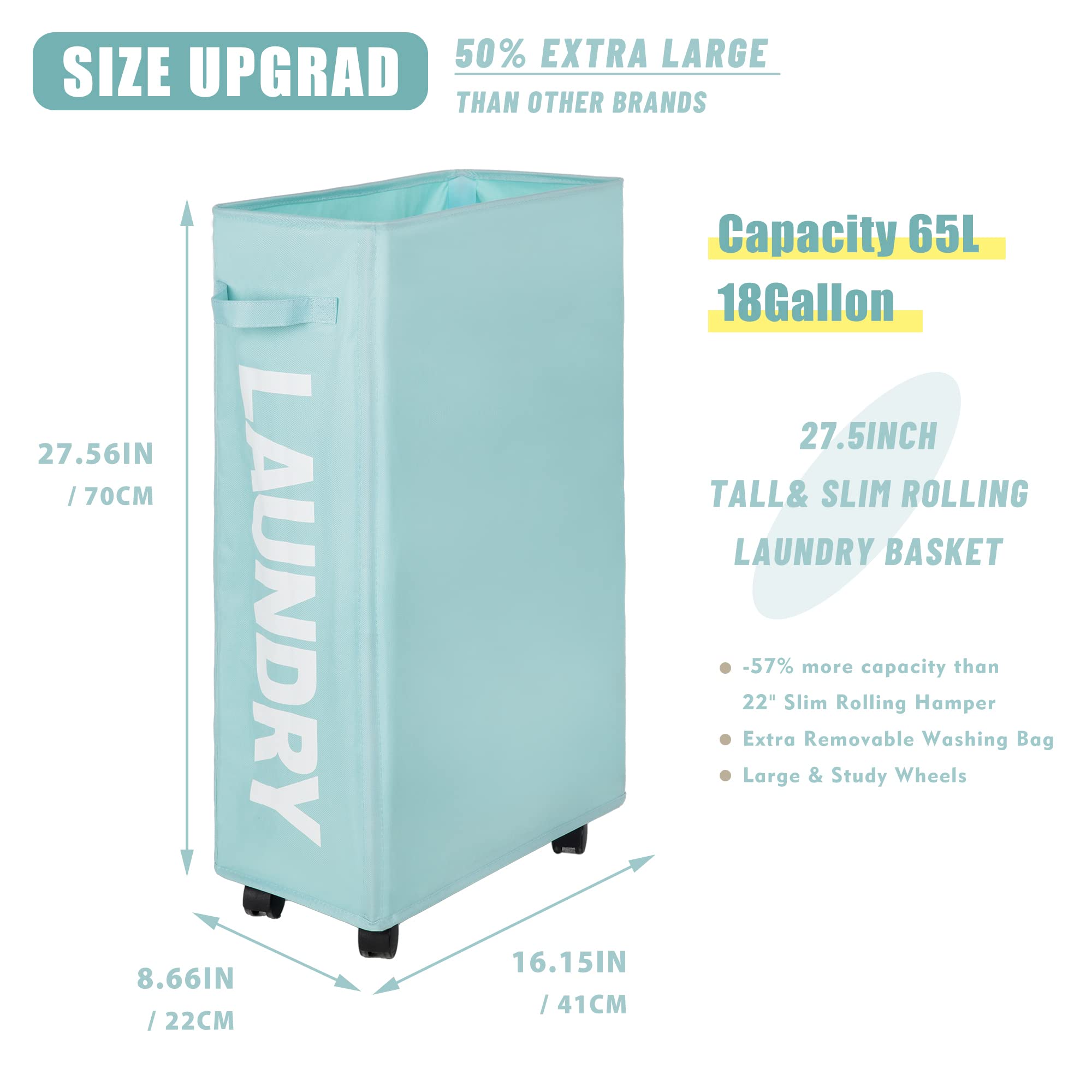 4 Size Tall Laundry Basket Roller Laundry Hamper with Wheels | Caroeas